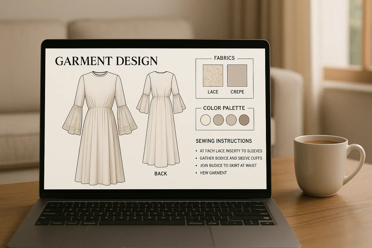 גם המותגים הגדולים ביותר בעולם עובדים באותה השיטה: שולחים תיק מוצר מעוצב בקפידה, עם כל המידע שצריך – שרטוטים, טקסטילים, צבעים, הוראות תפירה באנגלית – וכל זה מהמחשב הביתי שלהן.